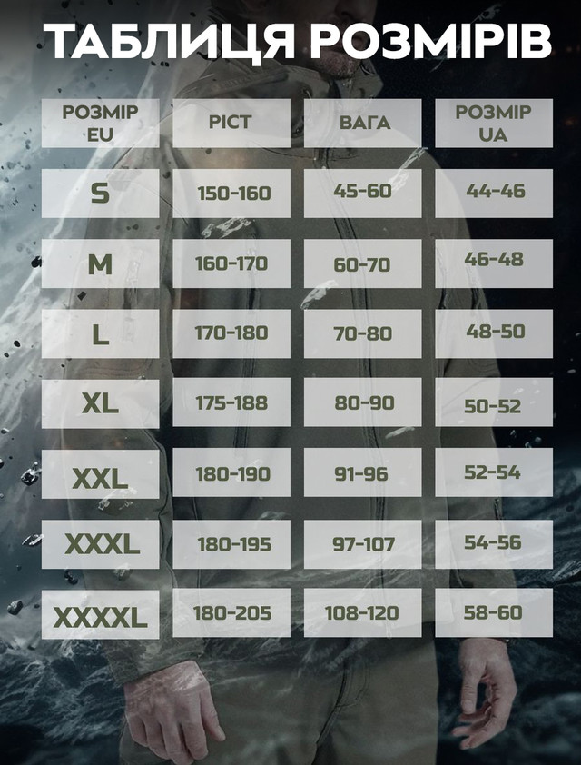 Розмір тактичної курточки може не збігатися з тим розміром який Ви носите.